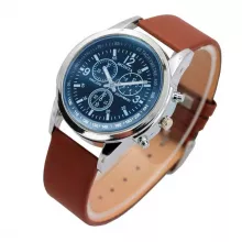 Use our battle tested marketing materials for Elegant Quartz Men's Watch with Blue Glass and Leather Strap