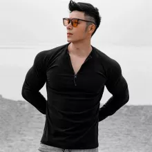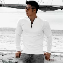 Use our battle tested marketing materials for Men's Long Sleeve Slim Fit Sports T-Shirt with Zipper Neckline