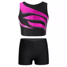 Use our battle tested marketing materials for Girls Dance & Gymnastics Outfit - Sleeveless Shiny Rhinestone Crop Top with Shorts