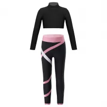 Use our battle tested marketing materials for Kids' Athletic Wear Set - Stretchy Long Sleeve Crop Top & Colorblock Leggings for Gymnastics, Yoga, Skating