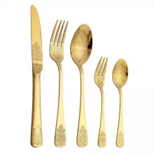 Use our battle tested marketing materials for Elegant 5-Piece Golden Stainless Steel Cutlery Set