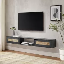 Use our battle tested marketing materials for Chic Black Rattan-Door Floating TV Stand for Up to 80-inch TVs