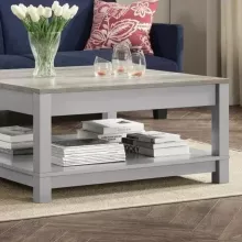 Use our battle tested marketing materials for Elegant Matte Black Coffee Table with Woodgrain Top
