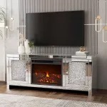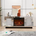 Elevate your living space with a luxurious touch that combines modern style and warm ambiance. This Mirrored Fireplace TV Stand is more than just furniture—it's a statement piece. Drenched in shimmering crushed diamond accents and finished with smooth mirrored panels, this entertainment center instantly enhances any room with light and sophistication. Whether you're entertaining guests or unwinding after a long day, the dazzling fireplace and sleek design create the perfect blend of beauty and function.