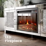 Built to hold TVs up to 50 inches (and even some 55-inch models), this TV console table is ideal for plasma, LED, OLED, or LCD screens. The integrated electric fireplace brings a realistic flame effect with customizable LED brightness. Choose between 750W and 1500W heat settings for energy-efficient warmth that suits every season. On each side of the fireplace, mirrored surfaces and faux crystals add a glamorous sparkle that catches every eye.