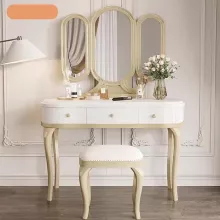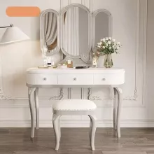 Use our battle tested marketing materials for Elegant Solid Oak Wood Dressing Table Set with Mirror and Stool - Rustic Modern Moroccan Style Vanity