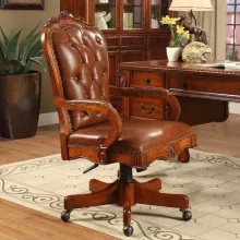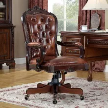 Use our battle tested marketing materials for Luxurious Retro Carved Wood and Leather Swivel Office Chair