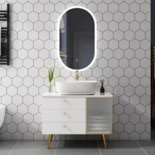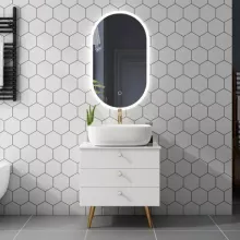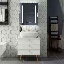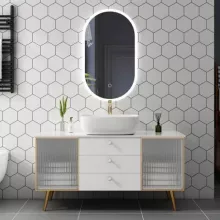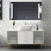 Use our battle tested marketing materials for Modern White Oak Bathroom Vanity Set with Smart Mirror and Marble Countertop