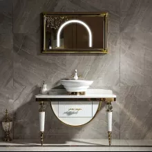 Use our battle tested marketing materials for Elegant Quartz-Top Solid Wood Bathroom Vanity with Sink and Mirror Light