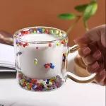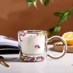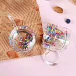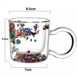 Imagine starting your day with a cup of coffee or unwinding in the evening with a soothing tea in this mesmerizing glass cup. Its heart-shaped, multicolor quicksand design swirls enchantingly, creating a playful yet elegant vibe. Suitable for everyday use or special occasions, this glass cup is not just a drinkware item; it's a statement piece that reflects your unique style and taste.