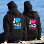 They are specially designed for the Autumn/Winter season, ensuring you stay warm and comfortable while looking effortlessly stylish. The 'I LOVE MY CRAZY HUSBAND' print adds a playful touch, making these hoodies ideal for couples who love to showcase their bond.