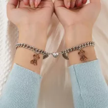 Discover the perfect blend of style and symbolism with our Charming Heart & Bear Couple Magnet Bracelets. These bracelets are more than just a piece of jewelry; they are a statement of connection and love. Designed to celebrate the special bond between friends, loved ones, or couples, these bracelets are an ideal choice for Valentine's Day or as a thoughtful gift for any occasion.