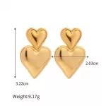 The earrings are designed with love in mind, featuring a captivating double heart shape that symbolizes deep affection and connection. The smooth, gold-plated metal adds a touch of luxury, while the drop style offers a graceful dangle that enhances your every move. Perfect for wearing on special occasions or as a daily fashion statement, these earrings are versatile and stylish.