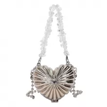 Introducing our stunning Luxury Heart-Shaped Metal Alloy Mini Shell Bag, a true epitome of elegance and functionality. Designed for the modern woman who appreciates sophistication, this exquisite bag is perfect for various occasions, especially Valentine's Day. Whether you're stepping out for a romantic dinner or a chic gathering, this bag is sure to elevate your style. Its unique heart shape and lustrous silver color make it a standout accessory that complements any outfit.