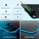 Ideal for both home and office settings, this RGB Gaming Mouse Pad elevates your gaming sessions and enhances your workspace efficiency. Whether you're in the middle of an intense gaming marathon or juggling multiple tasks at work, this mouse pad stands as your reliable ally. Its radiant RGB lighting adds a dynamic ambiance to your gaming setup, while the wireless charging keeps your devices powered during long hours of use.