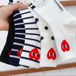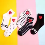 This Valentine's Day, step out in style with our charming Polka Dot & Striped Cotton Blend Socks. They are not just socks; they are a symbol of love and comfort, perfect for celebrating the day of love. Don't wait! Add a pair to your collection today and experience the perfect blend of style, comfort, and affection.