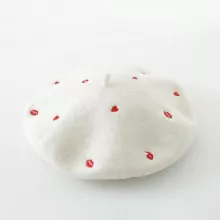 Our beret stands out for its unique design featuring adorable embroidered kisses and hearts, adding a whimsical and romantic flair that's just perfect for Valentine's Day or any day you feel like spreading love. The blend of classic style with these charming details makes this hat not just a headwear but a piece of art.