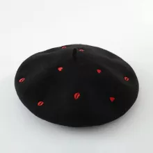 Don't miss out on the opportunity to own this exquisite wool beret. It's not just a hat, but a symbol of style, romance, and sophistication. Embrace your love for fashion and make a statement today. Add our Chic Wool Beret with Embroidered Red Hearts & Lips to your collection now!