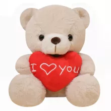 Introducing our enchanting 28cm teddy bear, a symbol of affection and warmth, designed to melt hearts this Valentine's Day. This adorable bear, available in soft shades of beige, white, and pink, clutches a large, striking red heart with the endearing message "I Love You." Crafted for those special moments, it's not just a gift but a memorable way to say "I care."