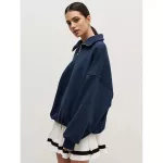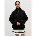 - Fabric: Cotton, Polyester blend - Style: Oversized, Turtleneck - Season: Autumn/Winter - Features: Zipper decoration, fleece lining, solid pattern - Sizes: S, M, L - Care: Cold water hand wash, routine dry cleaning recommended
