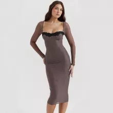 Use our battle tested marketing materials for Elegant Lace Side Mesh Bandage Midi Dress