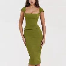 Use our battle tested marketing materials for Green Sexy Women Two Piece Set - Square Collar Short Sleeve Tops And Midi Skirt Matching Sets