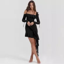 Use our battle tested marketing materials for Elegant Spaghetti Strap Backless Ruffle Mini Dress for Women