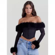 Use our battle tested marketing materials for Elegant Feather Strapless Backless Sheer Long Sleeve Sexy T-Shirt