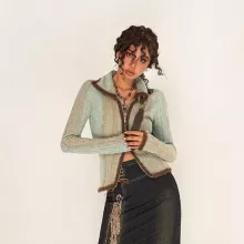 Use our battle tested marketing materials for Women's Slim Fit Knitted Cardigan with Two-Way Zipper and Flash Stripes