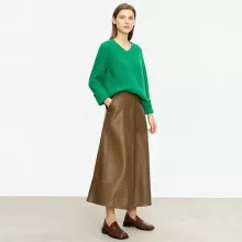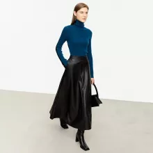 Use our battle tested marketing materials for Elegant Autumn Ankle-Length A-Line Leather Midi Skirt for Women