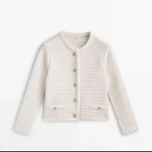 Use our battle tested marketing materials for Women's Gold Buttons Striped Knitted Coat