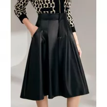 Use our battle tested marketing materials for High Waist A-Line Knee-Length Black PU Leather Skirt
