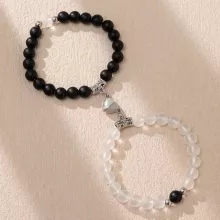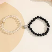 Each set includes two elegantly crafted bracelets, adorned with 8mm glass beads that shimmer with every turn. The heart of these bracelets lies in their magnetic charm, designed to attract and bind, symbolizing the unbreakable bond between loved ones. Constructed with a durable zinc alloy and devoid of any clasp, these bracelets offer both style and comfort, ensuring a secure fit for any wrist size. Their unique beaded chain adds a trendy touch to any outfit, making them not just a piece of jewelry but a fashion statement.