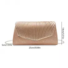Made with premium PU and adorned with a shiny surface decoration, our evening clutch is not just a bag; it's a statement. The durable, waterproof, and wear-resistant materials ensure your bag remains pristine, event after event. The envelope style, complemented by a luxurious metal chain, conforms to the latest fashion trends while offering versatility in how you choose to wear it. Available in stunning shades of Champagne, Gold, and Silver, there's a perfect match for every outfit and mood.