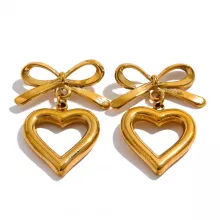Introducing our New Stainless Steel Bow Tie Heart Love Hollow Drop Earrings – the epitome of style, sophistication, and timeless elegance. Crafted from high-quality stainless steel and delicately gold-plated, these trendy earrings are a must-have for every fashion-forward woman.