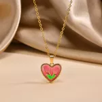 - Features a trendy, heart-shaped tulip pendant that symbolizes love and renewal.