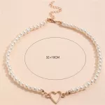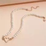 - Features an elegant link chain with a heart-shaped pendant, adorned with imitation pearls.