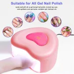 Our heart-shaped UV LED Nail Lamp is not just a tool; it's your partner in achieving salon-quality nails at home. It's specially designed to save you 80% of curing time compared to traditional nail lamps, making it a time-efficient choice for those who value both beauty and productivity. Whether you're working with regular, dark, or thick gel polish, our lamp has you covered with its three timer settings, ensuring a perfect cure every time without the risk of pain or discomfort. Its charming pink heart design not only looks great on your vanity but also reflects the love and care you put into your nail art.