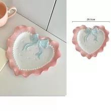 Aside from its practicality, what sets this tray apart is its unique design. The love bow motif and wavy edges are not just decorative; they symbolize care, affection, and attention to detail. The choice of uplifting colors makes it a lively addition to any room, brightening spaces and moods alike. Its ceramic craftsmanship ensures durability, making it a cherished part of your home for years to come.