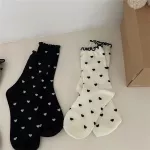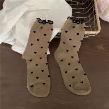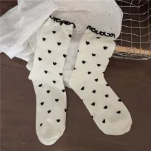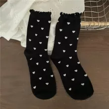 At the heart of our socks is the commitment to quality and style. Made from a cozy blend of cotton, polyester, and spandex, they offer the perfect balance of comfort and elasticity. The middle tube height is ideal for autumn and winter days, providing warmth without bulk. With a solid pattern adorned with adorable heart prints and ruffles, these socks are the epitome of cute and kawaii. Whether you're lounging at home or stepping out in style, they're designed to suit women EUR sizes 34-39, ensuring a comfortable fit for most.