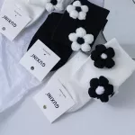 Step into a world where fashion meets functionality with our Chic Black & White Cotton Knit Flower Socks. Designed to elevate your everyday look while providing the utmost comfort, these socks are a must-have accessory for those who appreciate a touch of sweetness and trend in their wardrobe. Crafted from premium cotton, these socks promise breathability and softness, making them ideal for spring, summer, and autumn.