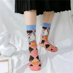 What sets these socks apart is their enchanting design, featuring cute cartoon cats and heart lattice food patterns that capture the essence of youthful, artistic expression. They are not just socks; they are a statement of fun, fashion, and comfort. The thick, standard thickness material provides ample warmth without compromising on style, making them ideal for anyone looking to add a dash of whimsy to their wardrobe.