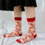 Our socks aren't just any ordinary pair; they are a testament to quirky, fun fashion that also serves the purpose of keeping you warm through the chill of winter, spring, and autumn. The unique blend of cotton, polyester, and spandex ensures breathability, sweat absorption, and a comfortable stretch that fits most sizes. Whether you're lounging at home, stepping out for a casual meet-up, or gifting them to someone special, these socks are designed to be a versatile, delightful choice.
