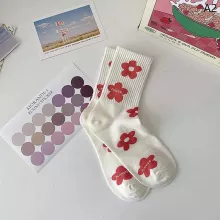 Don't miss out on the perfect combination of style, comfort, and versatility. Whether you're treating yourself or looking for the perfect gift, our Pink Flower Cotton Mid-Tube Socks are sure to delight. Add to cart now and step into a world of sweet comfort and playful style.
