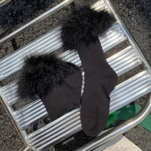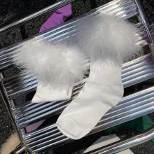 Don't wait any longer to add this exquisite pair of socks to your collection. Perfect for personal use or as a thoughtful gift, they're bound to bring joy and style into your life. Click "Add to Cart" now and step into a world of comfort and fashion with our Rose Pink Feather Fur Cotton Socks. Your feet deserve a touch of luxury and fun!