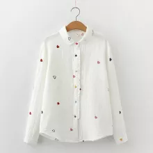 Use our battle tested marketing materials for Love Heart Print Women's Long Sleeve Cotton Blouse