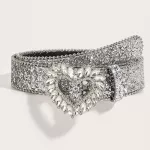 Our belt is meticulously crafted with a blend of metal and PU materials, offering durability and style in equal measure. Available in the captivating design of the Love Heart, each belt is adorned with silver rhinestones that catch the light beautifully. The geometric patterns and the blend of punk, vintage, and Y2K styles make this belt more than just an accessory; it's a statement.