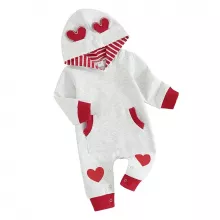 Introducing our adorable Baby Girls' Valentine's Day Heart Print Hooded Romper – the perfect blend of comfort, style, and love for your little angel! Designed with cozy long sleeves and a charming heart print, this gray hooded jumpsuit is an ideal choice for celebrating love, not just on Valentine's Day but all year round. Crafted from a soft blend of 95% cotton and 5% polyester, it ensures your baby enjoys both warmth and comfort with every wear.