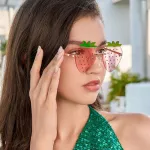 Unleash Your Playful Side with Our Heart-Shaped Rimless Strawberry Sunglasses