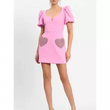 Step into a world of glamour and elegance with our latest addition to high street fashion - the Pink Sequin Heart Puff Sleeve Mini Dress. Designed to capture the essence of modern chic while celebrating feminine strength, this dress is a must-have for every woman seeking to make a bold fashion statement. Its enchanting pink hue, complemented by dazzling diamond decorations, sets the stage for an unforgettable appearance, no matter the occasion.